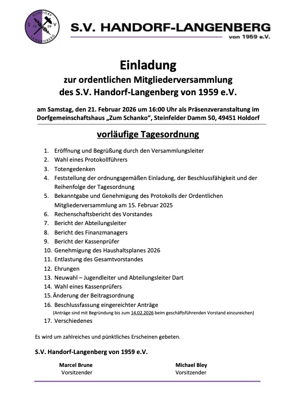 Einladung zur Ordentlichen Mitgliederversammlung!